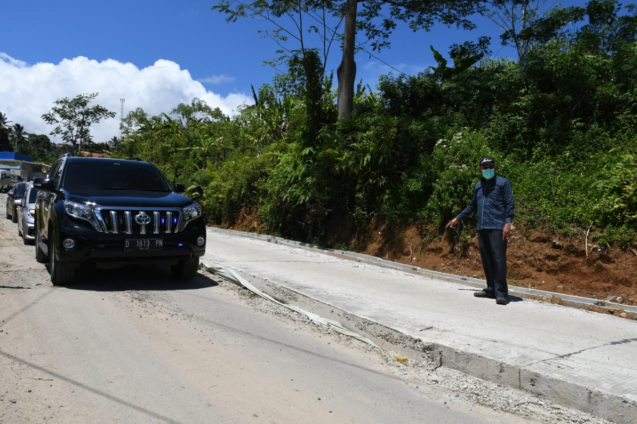 Wakil Ketua DPRD Jabar H. Achmad Ru’yat menyempatkan meninjau jalan di Sukajaya hasil advokasinya dalam penganggaran APBD Jawa barat 2021.