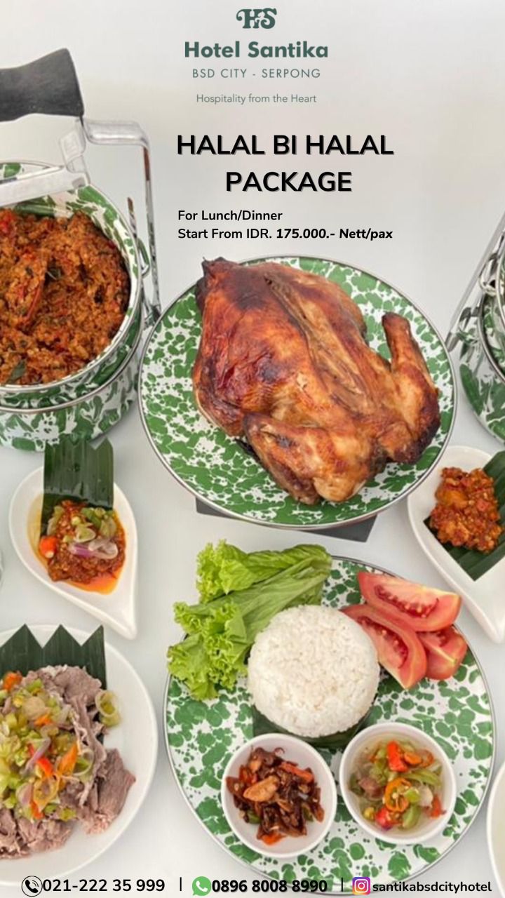 Namun dikarenakan hambatan yang terjadi selama 2 (dua) tahun terakhir akibat pandemi Covid-19 terdapat pembatasan untuk melakukan pertemuan, termasuk pertemuan untuk menyelenggarakan acara Halal Bihalal. Akibatnya banyak orang yang sudah lama tidak melakukan tradisi Halal Bihalal ini. Maka, Hotel Santika BSD City memberikan promo eksklusif untuk merayakan tradisi Halal Bihalal dengan menu spesial yang dipersembahkan oleh Deden Harmaen/Executive Chef Hotel Santika BSD City. Menu tersebut akan disajikan secara buffet yang dapat dinikmati bersama keluarga besar, kerabat kerja, dan orang-orang terdekat, tetap dengan menjalankan protokol kesehatan yang berlaku.