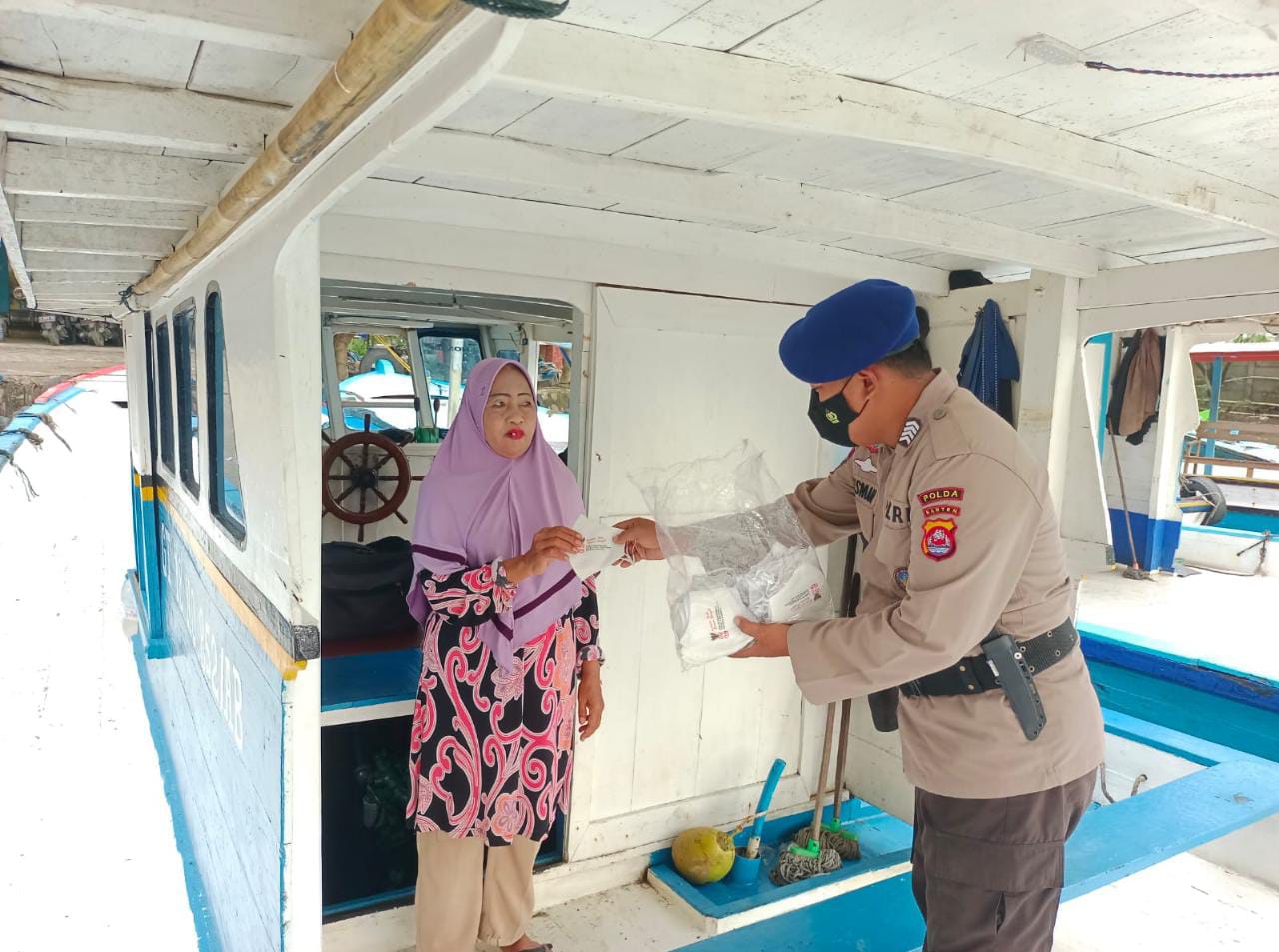 Serang – Hingga saat ini, personel Ditpolairud Polda Banten terus melakukan kegiatan bagi-bagi masker di wilayah pesisir. Hal ini dilakukan guna mencegah penyebaran Covid-19