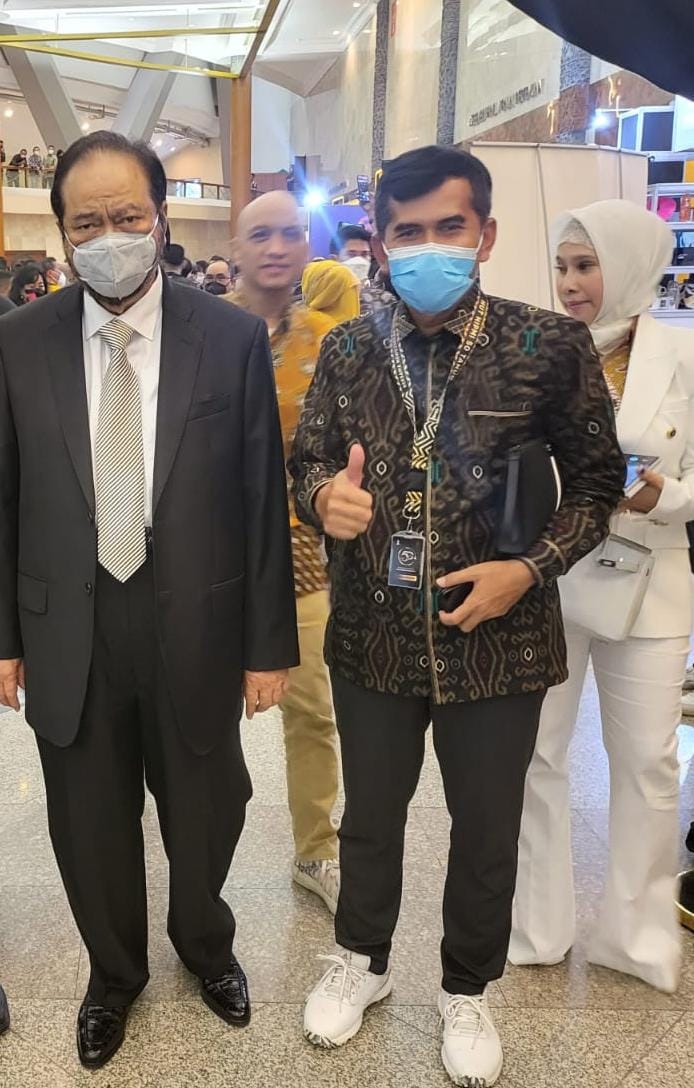Jakarta – Mendampingi Ketua Umum Partai Nasdem Surya Paloh dalam Acara Ulang Tahun Emas Himpunan Pengusaha Muda Indonesia (HIPMI), Ketua Dewan Pembina Himpunan Petani Milenial Indonesia (HPPMI) Mumahad Solikin, Mengaku sangat mendukung program Pengusaha muda yang tergabung dalam HIPMI.
