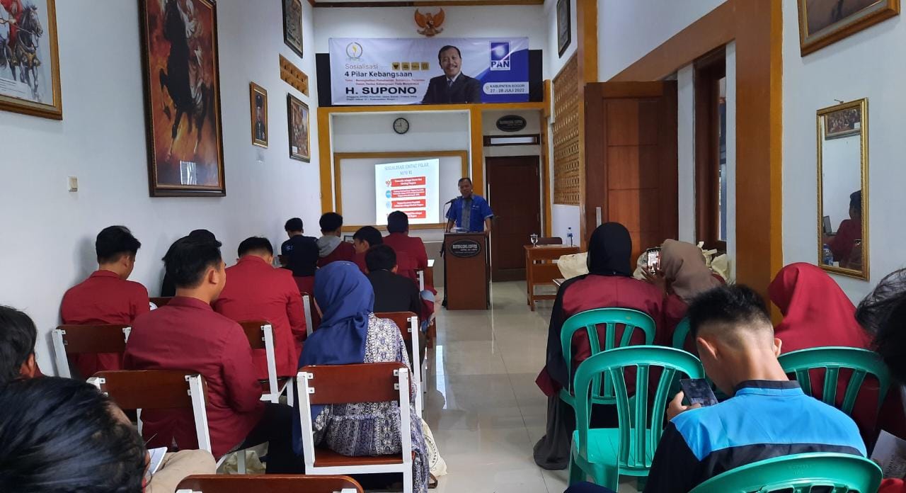Dalam giat tersebut, H. Supono mengatakan bahwa sosialisasi 4 pilar bagi para mahasiswa ini akan memberikan sinyal positif bagi para generasi muda agar tidak buta terhadap politik.