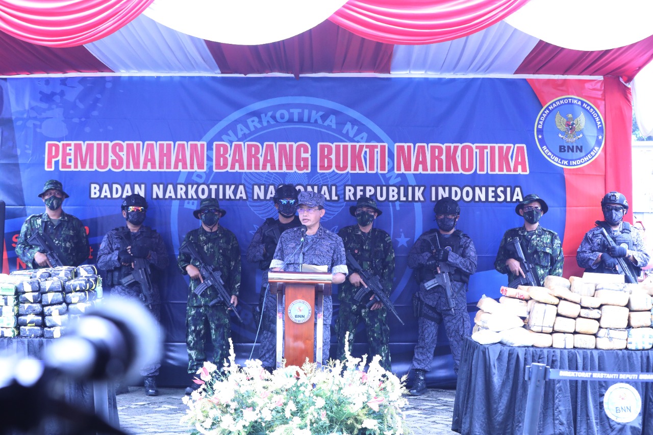Bogor, Cekberita.net – Badan Narkotika Nasional Republik Indonesia (BNN RI) melaksanakan pemusnahan barang bukti narkotika ke-4 di tahun 2022 berupa sabu seberat 235,52 kg, ganja seberat 231,24 kg dan ekstasi sebanyak 19.700 butir. Seluruh barang bukti yang disita berasal dari 10 Laporan Kasus Narkotika (LKN) dengan 16 tersangka (1 orang meninggal dunia) yang diungkap pada periode Juni hingga Agustus 2022.