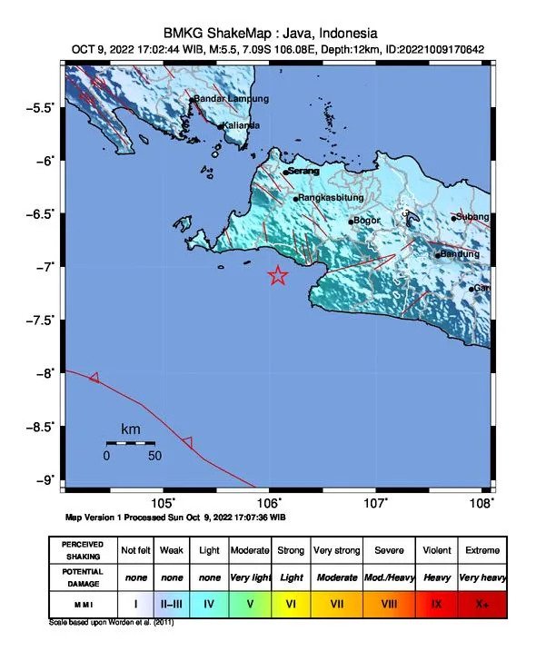 Inionline.id – Telah terjadi gempa bumi pada Minggu (09/10) sekitar pukul 17.02 Wib dengan kekuatan 5,5 SR di titik gempa berada di koordinat 7,09 derajat Lintang Selatan (LS) dan 106,08 derajat Bujur Timur (BT).