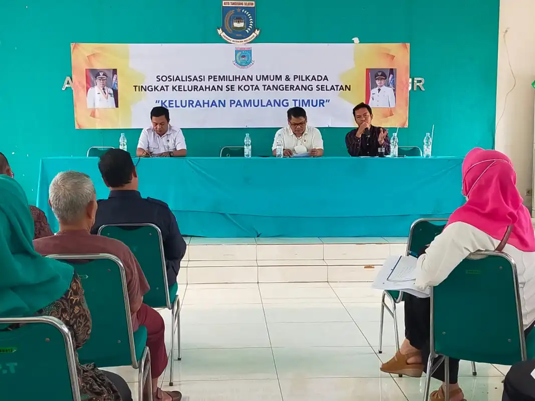 Cekberita.net – Sosialisasi Pemilihan Umum Dan Pilkada Tingkat Kelurahan se-Tangerang Selatan yang di gelar di Aula Kelurahan Pamulang Timur yang di hadiri Oleh Lurah Ade Heri Sutiawan S,E,M.M, dan sebagai Nara Sumber Anggota KPU Ajat Sudrajat, DKPP TPD Banten Didi Trihatmoko S,E,serta undangan dari sejumlah RT RW dan warga sekitar berjalan dengan lancar.