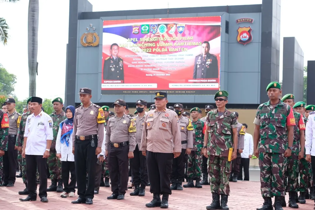 Sebagai informasi, dalam rangka memelihara situasi Kamtibmas mensukseskan pembangunan nasional 2022, Ditbinmas Polda Banten menggelar apel sinergi tiga pilar dan launching ulama Kamtibmas yang dilaksanakan di Lapangan Polda Banten pada Rabu (21/12).