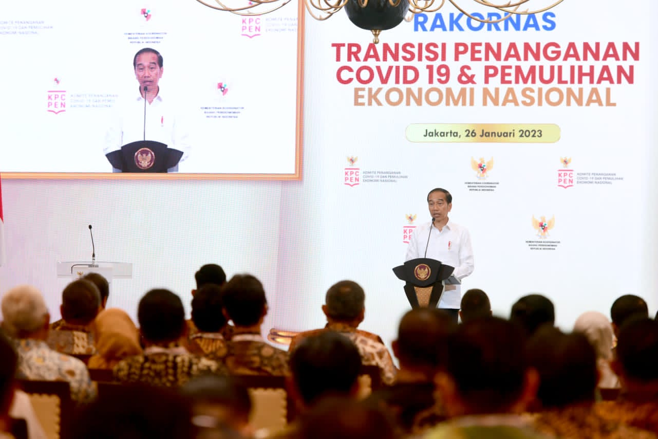 Cekberita.net – Presiden Joko Widodo secara resmi membuka Rapat Koordinasi Nasional (Rakornas) Transisi Penanganan Covid-19 dan Pemulihan Ekonomi Nasional (PC-PEN), yang digelar di Gedung AA Maramis, Kementerian Keuangan, Jakarta, pada Kamis, 26 Januari 2023. Dalam sambutannya, Kepala Negara mengapresiasi jajarannya dalam menangani pandemi Covid-19 dan perekonomian Indonesia.