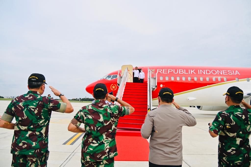 Cekberita.net – Presiden Joko Widodo dan Ibu Iriana Joko Widodo tiba di Pangkalan TNI AU Soewondo, Kota Medan, Provinsi Sumatra Utara, pada Rabu, 8 Februari 2023 sekira pukul 17.50 WIB.