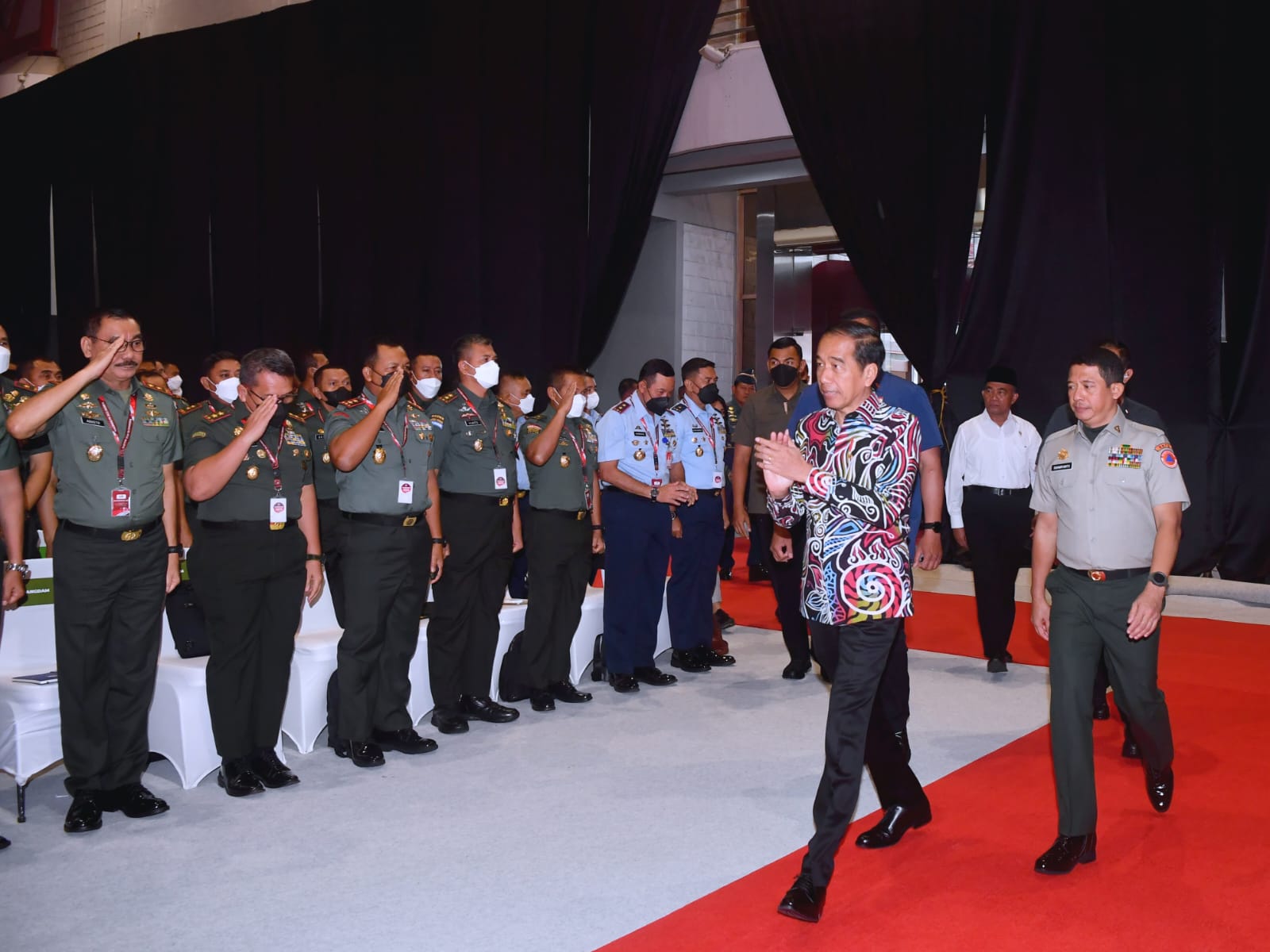 Turut mendampingi Presiden dalam acara tersebut yaitu Menteri Koordinator Bidang Pembangunan Manusia dan Kebudayaan Muhadjir Effendy, Menteri Koordinator Bidang Politik, Hukum, dan Keamanan Mahfud Md., Menteri Sekretaris Negara Pratikno, Panglima TNI Laksamana Yudo Margono, Kapolri Jenderal Listyo Sigit Prabowo, Kepala Badan Nasional Penanggulangan Bencana (BNPB) Suharyanto, dan Pj. Gubernur DKI Jakarta Heru Budi Hartono.