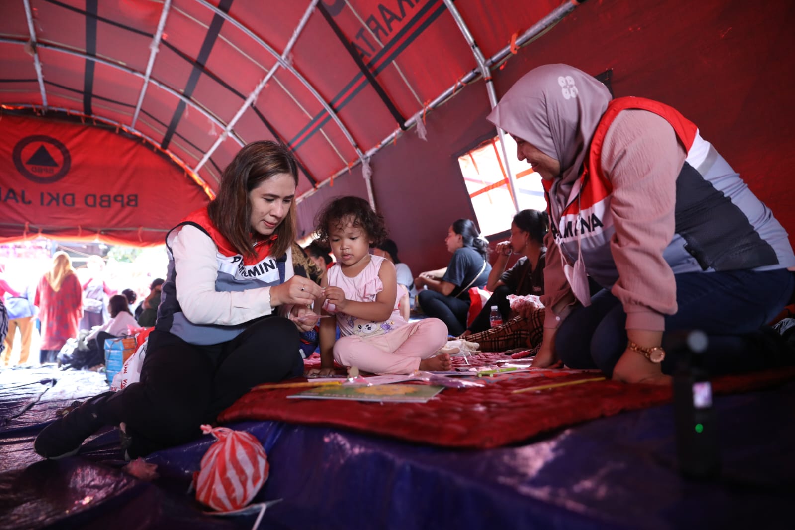Selain memberikan bantuan kepada warga terdampak, Subholding Upstream Pertamina juga terus menempatkan perwira di lokasi pengungsian guna memberikan kegiatan dan aktivitas untuk menghibur warga, khususnya anak-anak.