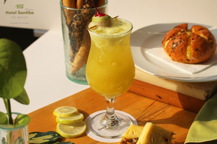 Dua varian jus yang dihadirkan Hotel Santika Premiere ICE BSD- City ini, terbuat dari bahan segar berkualitas. Seperti Cucumber Sour Dream, yang terbuat dari mentimun, nanas, lemon, dan madu.