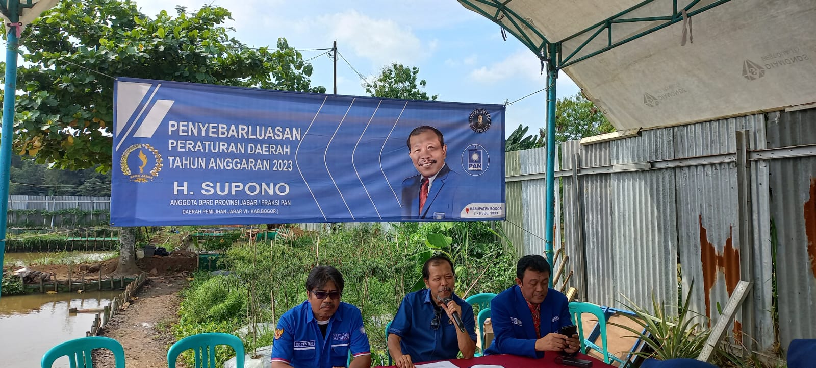 Bogor, Cekberita.net – Anggota Dewan Perwakilan Rakyat Daerah (DPRD) Jawa Barat fraksi Partai Amanat Nasional (PAN) H. Supono menggelar sosialisasi Peraturan daerah (Perda) nomor 15 tahun 2017 tentang pengembangan ekonomi kreatif di Sempung fish center, jalan Haji Mawi, Kecamatan Parung, Kabupaten Bogor, Sabtu (08/07/2023).