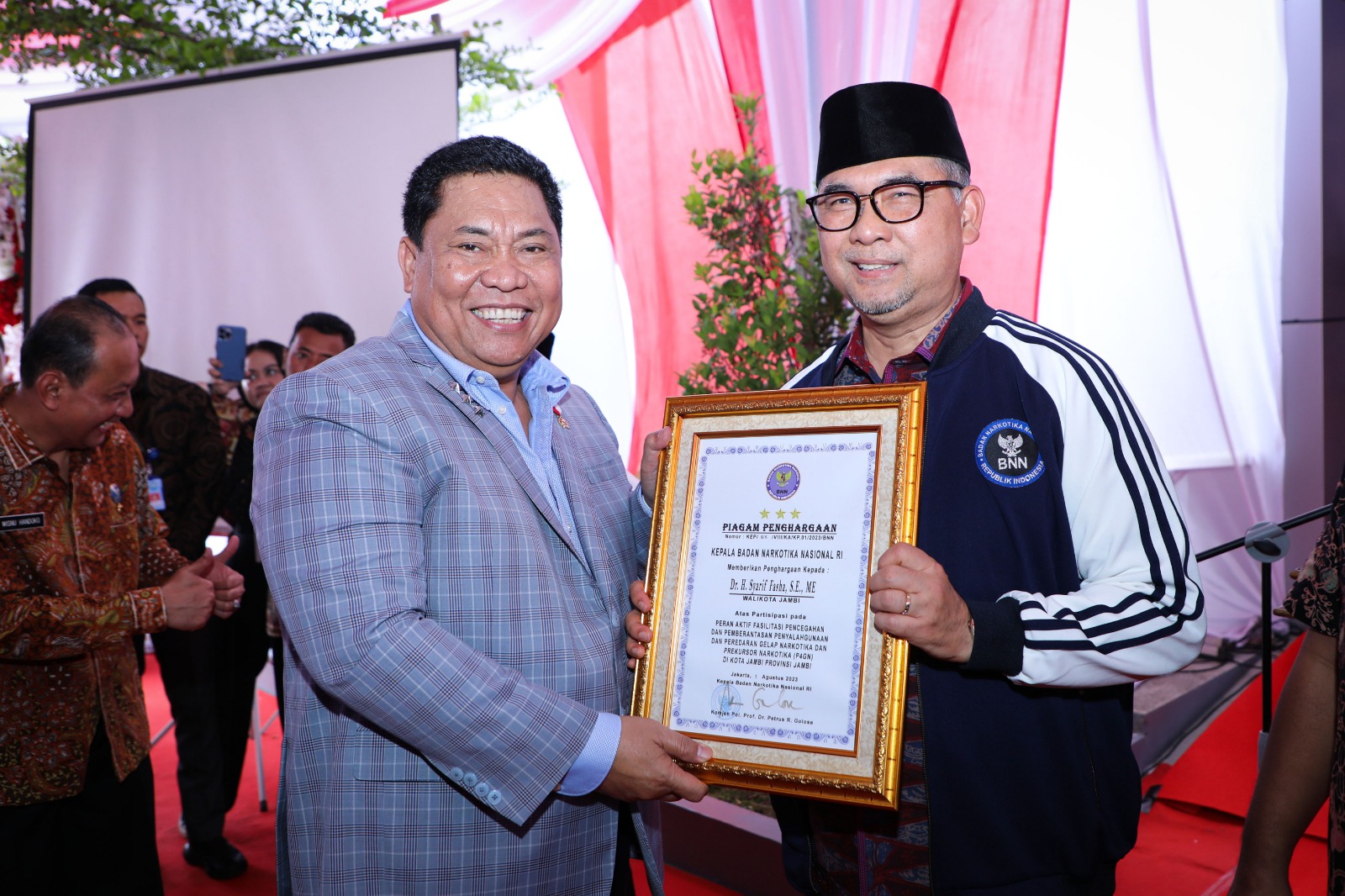 Pada kesempatan yang sama, Kepala BNN RI, Komjen Pol. Prof. Dr. Petrus Reinhard Golose, juga memberikan piagam Penghargaan Pencegahan dan Pemberantasan Penyalahgunaan dan Peredaran Gelap Narkotika (P4GN). Penghargaan ini diberikan kepada pemangku kepentingan yang telah menunjukkan perhatiannya dalam mengimplementasikan P4GN di Jambi.