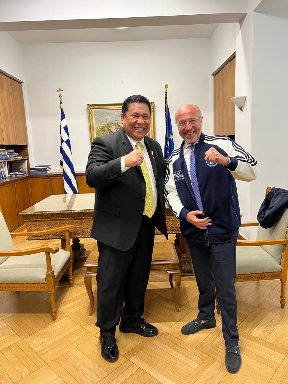 Cekberita.net – Bertolak dari Albania ke Yunani, Kepala BNN RI, Prof. Dr. Petrus Reinhard Golose didampingi Duta Besar Indonesia untuk Yunani, Y.M. Bebeb Abdul Kurnia Nugraha Djundjunan; Anggota Kelompok Ahli BNN RI bidang kerja sama internasional, Ambassador Harry James Kandou; Direktur PLRKM BNN, dr. Amrita Devi, SpKJ,M.; dan Direktur Intelijen BNN, Brigjen Pol. Ruddi Setiawan, S.H., S.I.K., M.H. melangsungkan pertemuan dengan Wakil Menteri Kesehatan Yunani, Dimitrios Vartzopoulospada, Jumat (25/8).