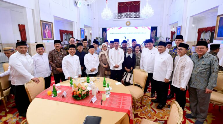 JAKARTA – Presiden Joko Widodo (Jokowi) bersama Wakil Presiden Ma’ruf Amin dan anggota Kabinet Indonesia Maju berbuka puasa bersama alias bukber di Istana Negara, Jakarta, pada Kamis, 28 Maret 2024, bertepatan dengan 17 Ramadan 1445 Hijriah.