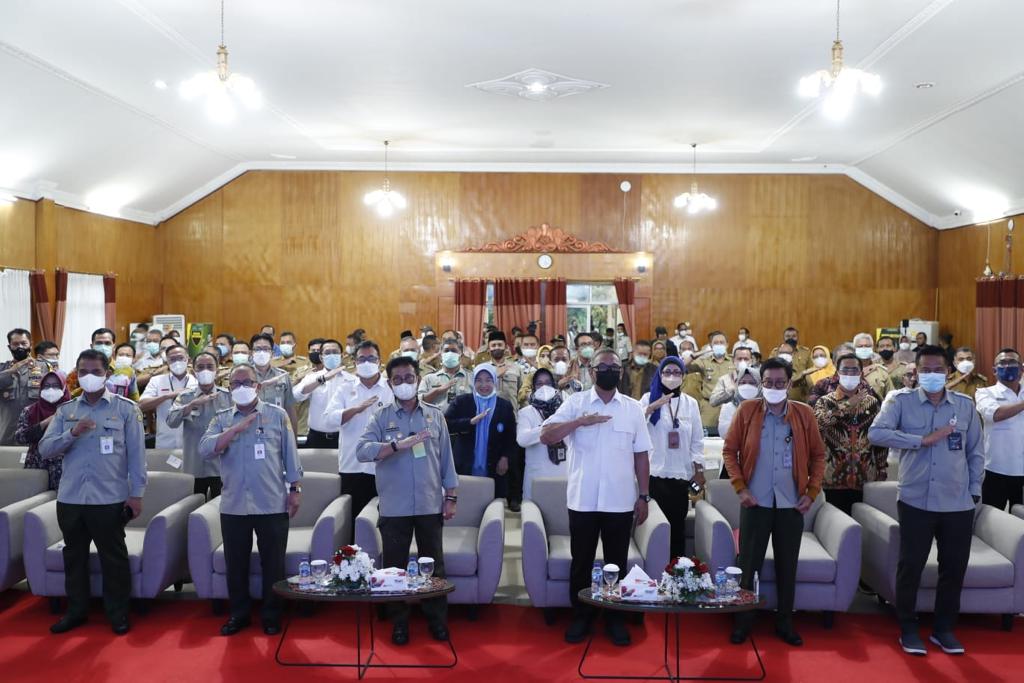 Bogor – Wakil Bupati Bogor Iwan Setiawan dampingi Menteri Pertanian RI, Syahrul Yasin Limpo saat membuka kegiatan Pelatihan Pertanian Bagi Camat Seluruh Indonesia, di gedung Bina Karakter, Pusat Pelatihan Manajemen dan Kepemimpinan Pertanian Ciawi, Jalan Raya Pertanian Desa Bendungan Ciawi Kabupaten Bogor, Kamis (28/10).