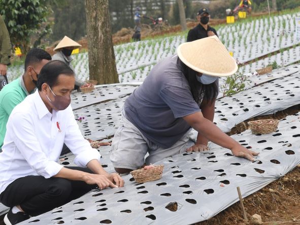 Cekberita.net – Presiden Joko Widodo mengawali kunjungan kerjanya dengan meninjau lumbung pangan (food estate) dan melakukan penanaman bawang merah bersama para petani dan masyarakat di Desa Bansari, Kabupaten Temanggung, Jawa Tengah, pada Selasa, 14 Desember 2021. Presiden berharap agar produktivitas dan pendapatan para petani dapat terus meningkat.